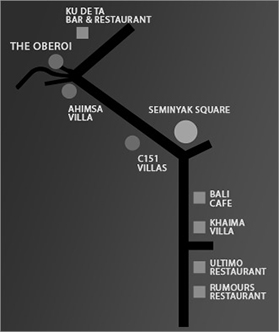 We are located on the upper level of boutique mall Seminyak Square which is conveniently situated at the intersection of Jalan Laksamana and Jalan Oberoi; within walking distance from major five star hotels and villas and exclusive restaurants.